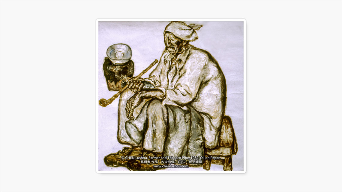 纸上油画《农夫与烟》是陈绿寿早期 (1982-1984) 油画作品。