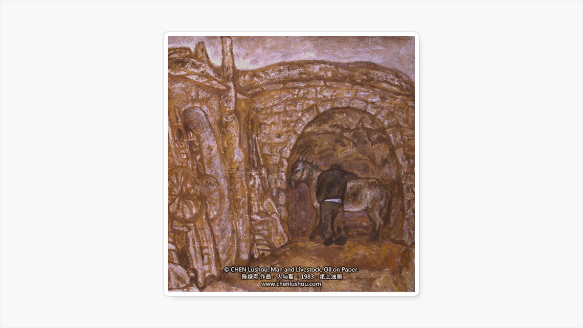 纸上油画《人与畜》,陈绿寿早期 (1982-1984) 油画作品。